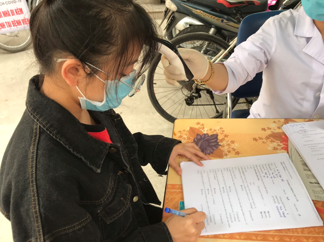 Toàn bộ người bệnh được đo thân nhiệt khi đến cổng Bệnh viện