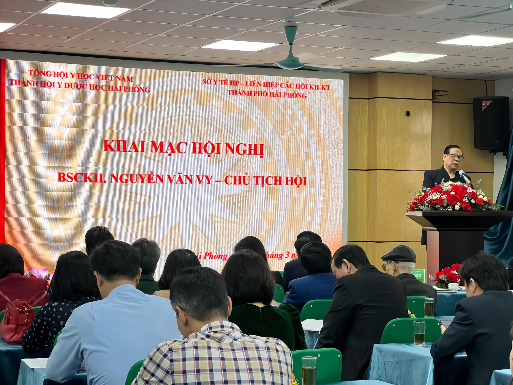 Thay mặt Hội Y Dược Học Hải Phòng, Bác sĩ CKII Nguyễn Văn Vy - Chủ tịch Hội đã báo cáo trước Hội nghị về công tác năm 2023. Dù phải đối mặt với nhiều khó khăn thách thức, nhưng với sự nỗ lực và tập trung cao độ cùng sự chỉ đạo của Lãnh đạo Thành phố và Sở Y tế, Thành hội Y Dược học Hải Phòng đã hoàn thành xuất sắc các nhiệm vụ chính trị. Nổi bật là các đóng góp trong công tác kiểm soát dịch bệnh và công tác chuyển đổi số, các hoạt động khoa học - công nghệ; cập nhật thông tin; nâng cao trình độ cho hội viên; thực hiện các chủ trương lớn của thành phố, của Tổng Hội Y Dược học Việt Nam và Liên hiệp các Hội Khoa học - Kỹ thuật Hải Phòng.